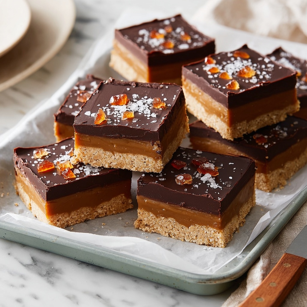 To enjoy these bars warm, place them in a preheated oven at 150°C (300°F) for 5-7 minutes. Warming enhances the gooey caramel and softens the shortbread, creating an almost freshly baked feel. Avoid microwaving, as it can make the chocolate lose its gloss and the texture a bit uneven.
